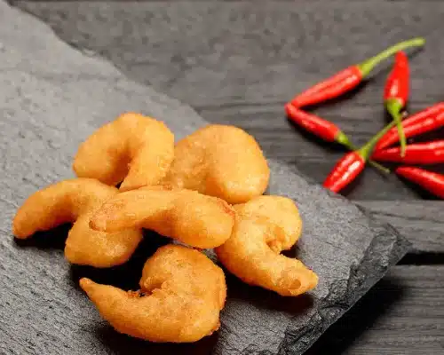 Indbagte rejerSprøde, gyldne rejer med saftigt fyld. En mild og lækker snack med perfekt crunch i hver bid.
