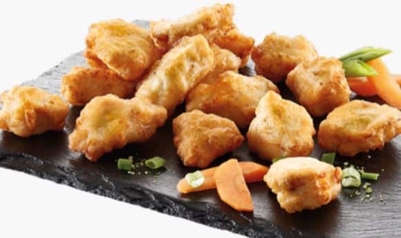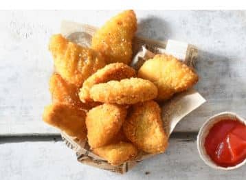 Indbagte kyllingechunks er en særlig form for nuggets. I stedet for sammenpresset kød er chunksene lavet på små, fine udskæringer fra et rent stykke kyllingebrystfilet. Det giver chunksene en naturlig form, mens den autentiske struktur fra fileten bevares. Og sammen med den tynde dejpanering er det med til at skabe en fantastisk spiseoplevelse.