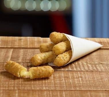 Mozzarella stænger, som er overtrukket og paneret, behagelig og tiltalende smag, som passer perfekt i blandede menuer eller som salat-topping