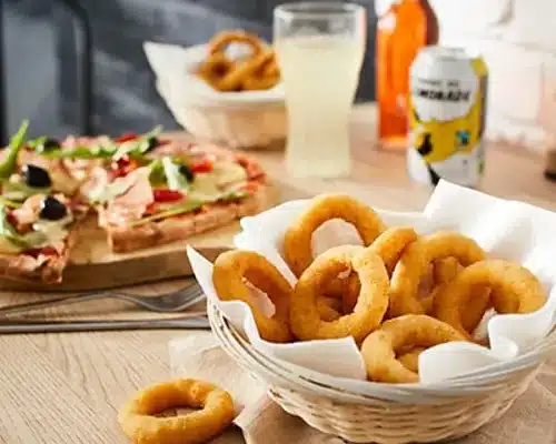 LøgringeSprøde, gyldne løgringe med mild løgsmag. En klassisk snack med lækkert crunch i hver bid.