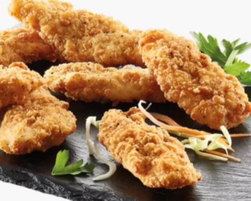 Lækre og saftige kyllingestykker, paneret og stegt til perfektion. Serveres sprøde og varme – perfekt til både store og små.