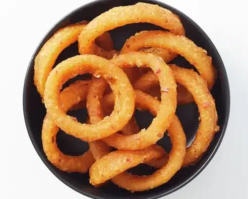 Spicy løgringeSprøde, gyldne løgringe med et mildt chili-kick. En lækker, krydret snack med masser af crunch